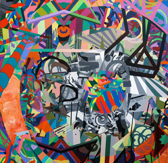 Studio H opens Amalgamations, new work by Steven Pearson. Pearson paints large scale work and has created a 9’ x 9’ installation piece for the gallery. Inspired by the deluge of quotidian information we are subjected to via social media, television, radio and email, Amalgamations translates this cacophony into vibrant colors and shapes that clash with one another eventually resulting in what Pearson calls “visual white noise”. For additional details, click here.