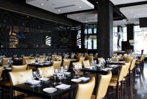Despite Tom Sietsema’s less-than-glowing review, I found the spot to be pretty stellar. The decor is sleek and modern, and interestingly pulls off dark and bright at the same time. A bar with a couch-laden lounge area flanks the open dining room, filled with posh red leather round booths and chandeliers and a very impressive gas fireplace. Definitely a good place to take a date.