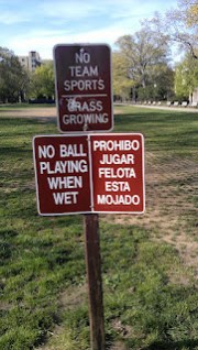 Sorry, bit of a tangent there. Where were we? Ah yes, the kind-of-great lawn. As you can also see from the sign, this portion of the park also features “grass growing” which is a huge plus. There’s also some dirt patches spread here and there where that sign’s directive has no jurisdiction, which I wouldn’t exactly call a plus or a minus, but one sign can only do so much.
