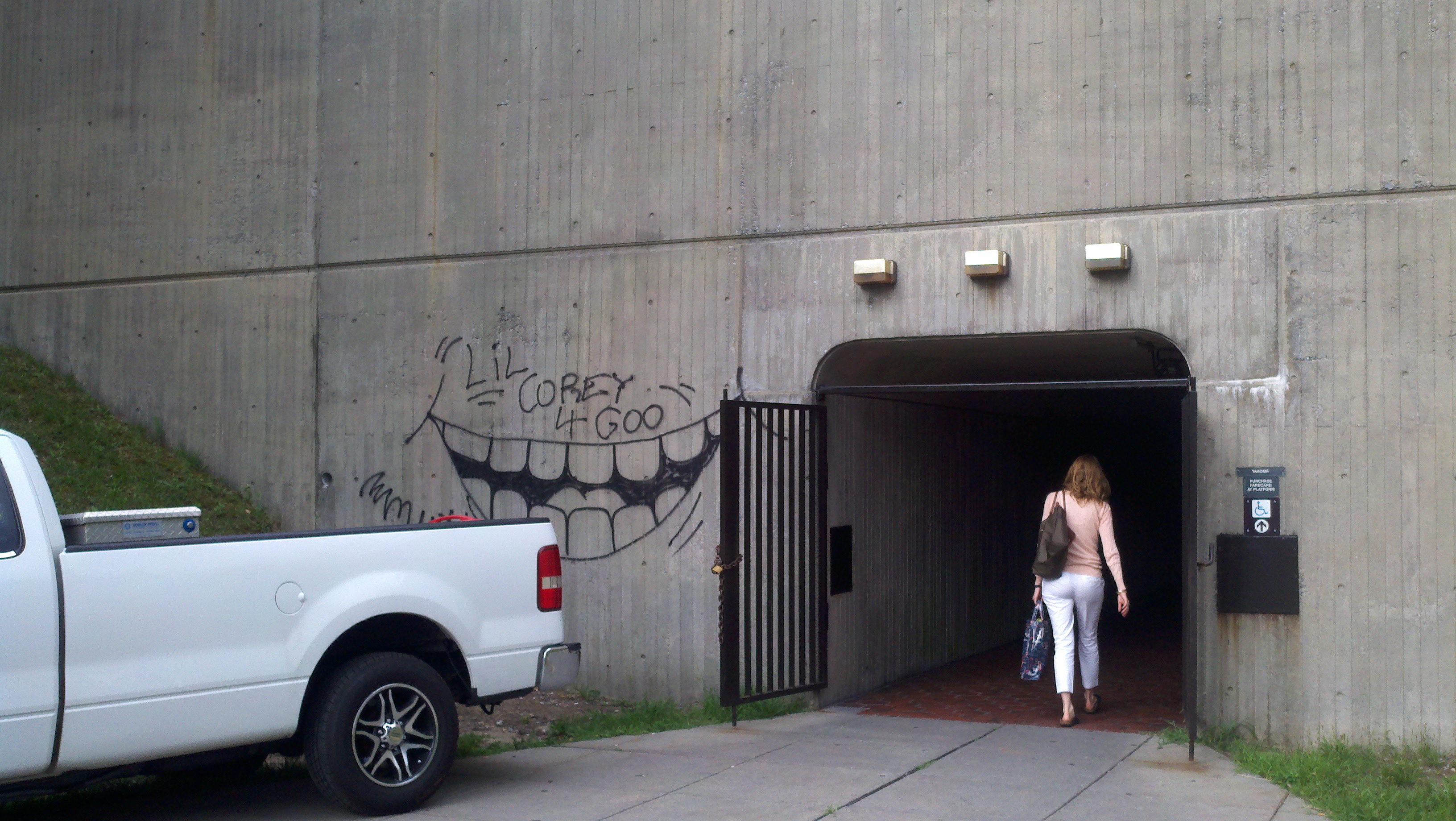 Outside the Takoma Metro station, this street art was gone within the week, but its proximity to the mouth of the tunnel leading to the elevator was a surprising start to the workday. And reminiscent of a Shel Silverstein book.