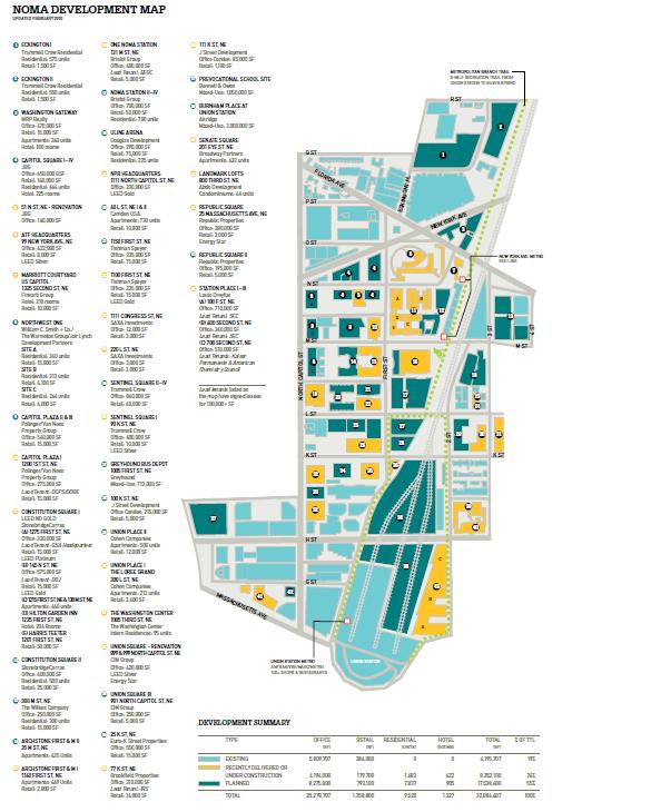 NoMa is a vibrant, growing neighborhood north of Union Station and the U.S. Capitol in Washington, D.C. In the last seven years, private developers have invested more than $5 billion in the 35-block area covered by the NoMa BID, and haveplans to develop more than 20 million square feet of office, residential, hotel, and retail space. NoMa is now home to 45,000 daytime workers, with 4.5 million SF leased in the last 4.5 years. More than 3,500 apartments have been recently completed or are under construction. NoMa offers 15 forms of transportation, including two Red Line Metro stops, and the best biking facilities in DC, with the only East Coast Bikestation, the 8-mile Met Branch Trail, and access to eight Capital Bikeshare stations. NoMa is the most connected neighborhood in Washington, D.C. For more information about NoMa,visit www.nomabid.org and sign up for the bimonthly newsletter. Follow on Twitter @NoMaBID; or Facebook at www.facebook.com/nomabid.