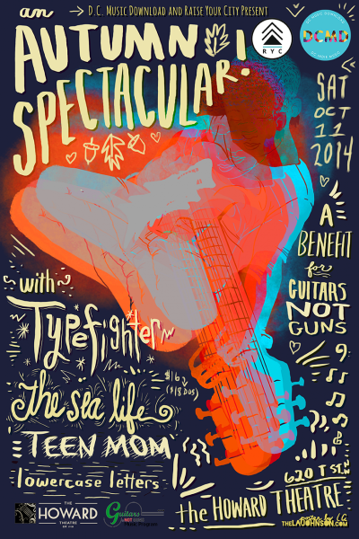 Four talented local bands (Teen Mom, The Sea Life, Lowercase Letters, and Typefigher) will be taking the stage at the famed Howard Theatre on October 11, to help raise money for this noble cause. They’ll be aided by a gifted local comic, Andrew Bucket, as MC. The celebration of local creative ventures will also feature giveaways from &pizza, live screen-printing and art.