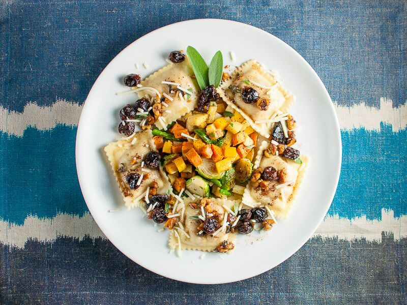 My meal was fantastic! The butternut ravioli with harvest vegetables (pictured) was just the right size, taste, texture, on and on.